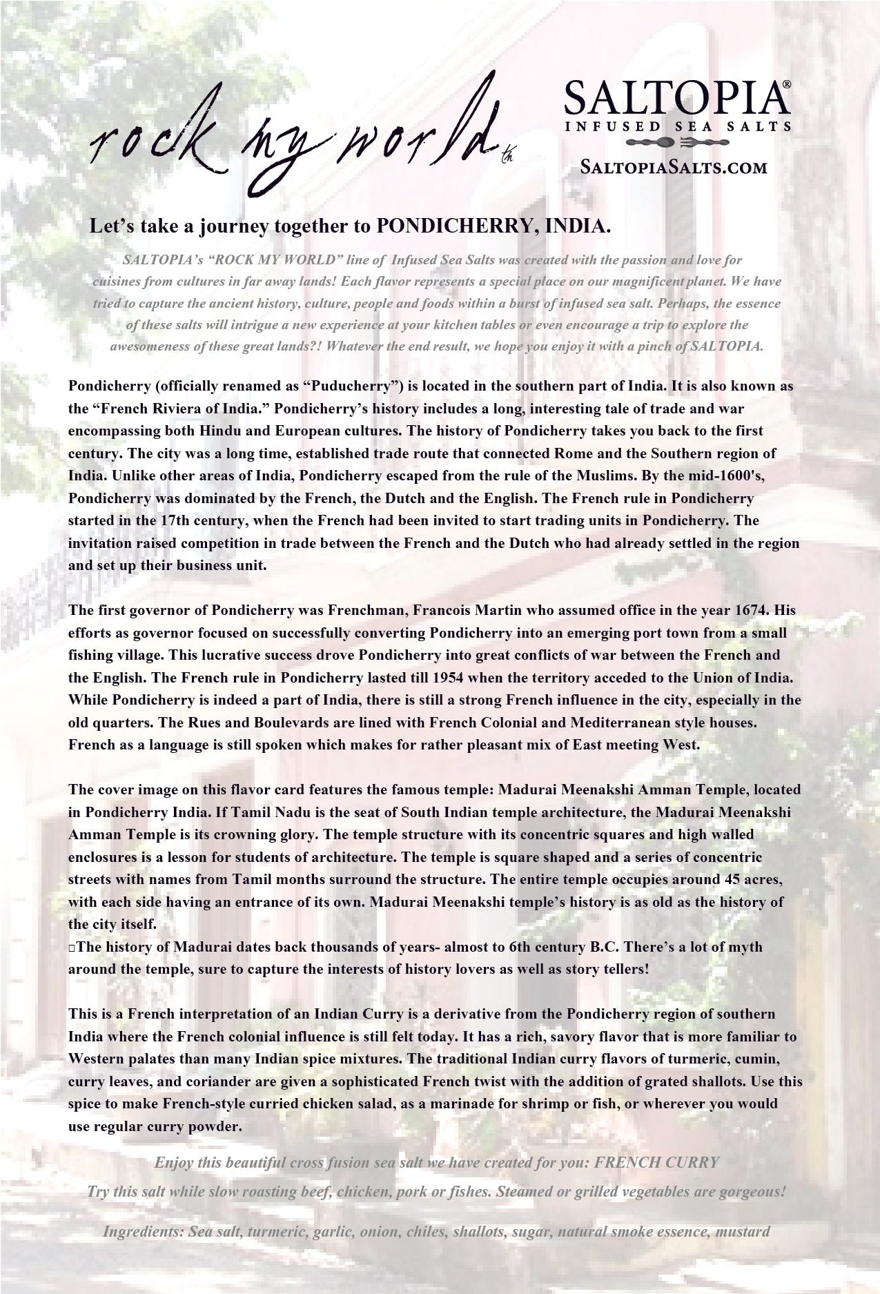 The tradition of curry meets the wonders of French cuisine in this beautiful full-bodied flavor! This flavor will quickly become the go-to in the kitchen for all proteins including chicken, beef, pork, seafood and more! Vegetables never tasted so good!