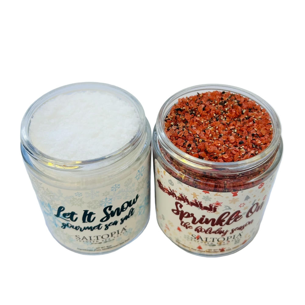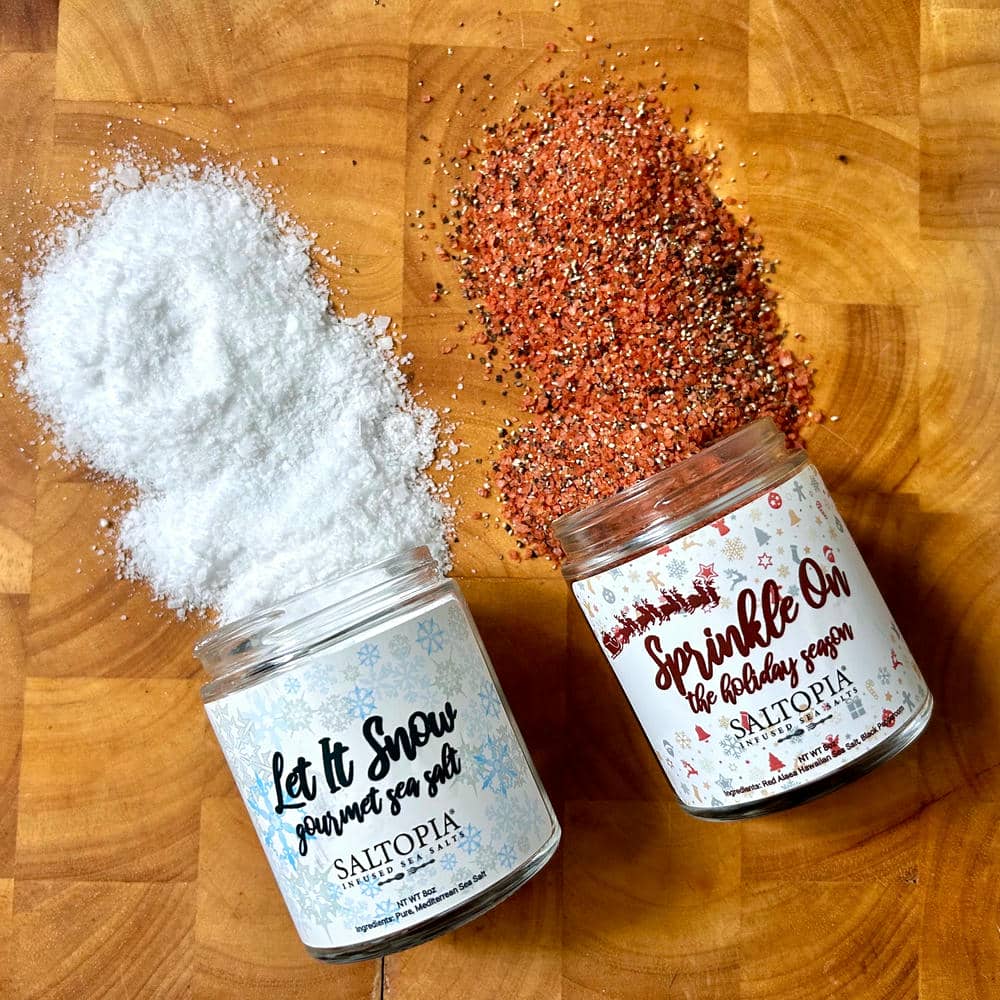 SALT & PEPPER, but oh so pretty! Two perfect pinches just in time for the holidays! This set offers our very own Naturally Harvested Sea Salt: Let It Snow! This beautiful sea salt has a delicate flakiness to it with a blend of pyramid crystal shapes and larger coarse flakes. Plus, the set also includes Red Alaea Sea Salt from Hawaii and gourmet black peppercorns. Both are excellent for cooking and as a finishing salts. The set is perfectly paired for the holiday festivities! Our products are 100% pure and made in the USA. Shelf life is 5 years from the date of the receipt. Store cool & dry.