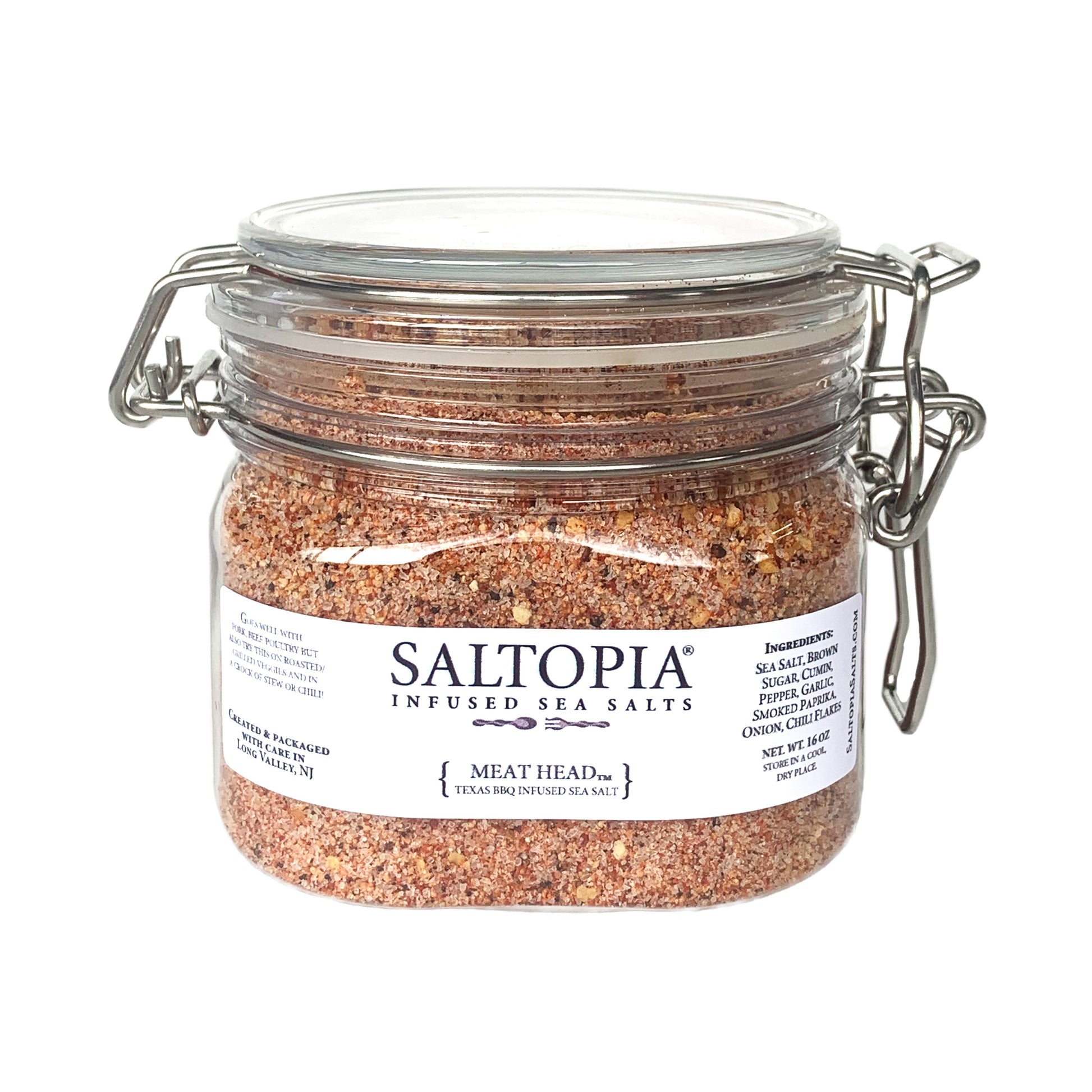 MEAT HEAD is SALTOPIA's take on Texas BBQ! Unlike other regional styles of barbecue where the meat is cooked over an open flame or charcoal, Texas barbecue uses direct heat from wood-burning pits. The result is a smoky, slightly sweet flavor that you can't get anywhere else! We hope our beloved Texans think this flavor hits the spot!